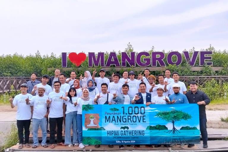 “Hari ini kita pengurus dan anggota HIPMI Kabupaten Tangerang melakukan penanaman 1000 pohon mangrove dan gathering yang menandai kebersamaan kita dengan kembali mendekatkan diri ke alam, yang juga menjadi potensi ekonomi dan penghilang polutan di Kabupaten Tangerang,” ujar Ketua BPC HIPMI Kabupaten Tangerang, M. Agus.