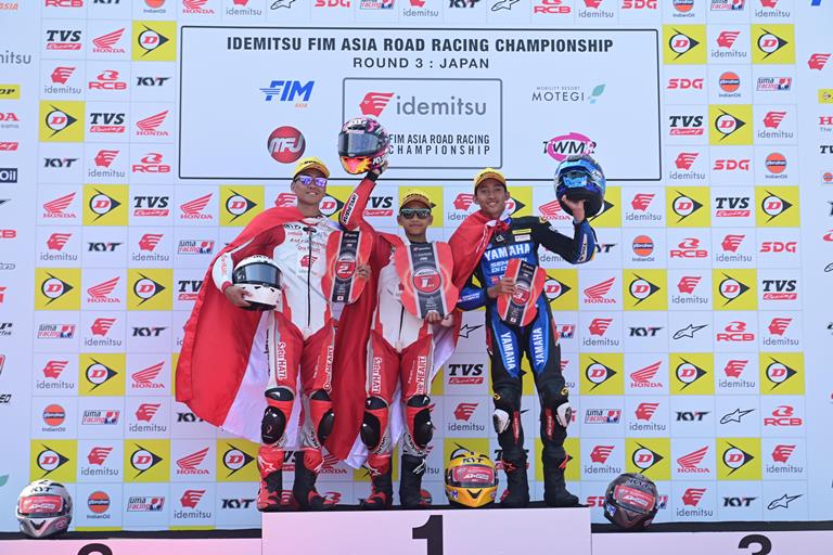 JAKARTA, SEBARAYA.COM – Dominasi pebalap Astra Honda di ajang Asia Road Racing Championship (ARRC) 2024 semakin tak terbendung. Pada seri ketiga race 1 yang berlangsung di Sirkuit Mobility Resort Motegi, Jepang, Sabtu, 8 Juni 2024, M. Kiandra Ramadhipa dan Herjun Atna Firdaus menguasai podium tertinggi di kelas Asia Production (AP) 250. Selain itu, M. Adenanta Putra meraih podium ketiga di kelas Supersport (SS) 600, membawa kebanggaan bagi Indonesia di negeri Sakura.