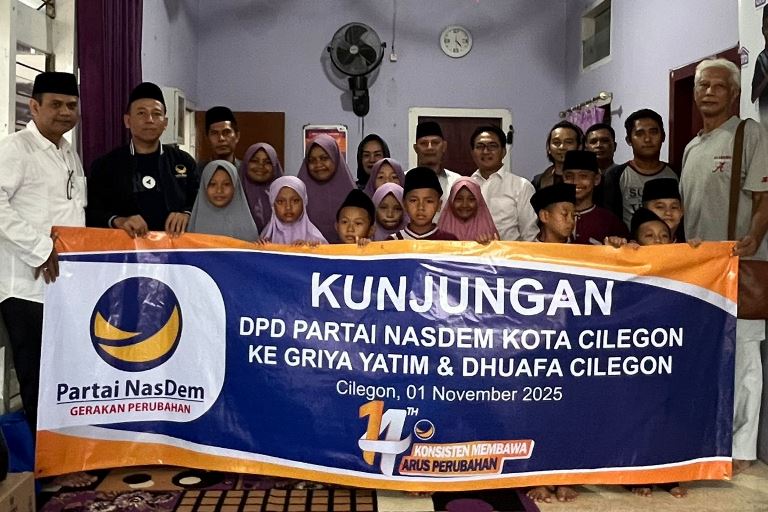 CILEGON, SEBARAYA.COM – Dalam rangka memperingati Hari Ulang Tahun (HUT) ke-14 Partai NasDem yang jatuh pada 11 November 2025, DPD Partai NasDem Kota Cilegon menggelar kegiatan sosial dengan mengunjungi Griya Yatim dan Dhuafa di Link. Blok C, Kelurahan Masigit, Kecamatan Jombang, Cilegon, Sabtu (1/11/2025).