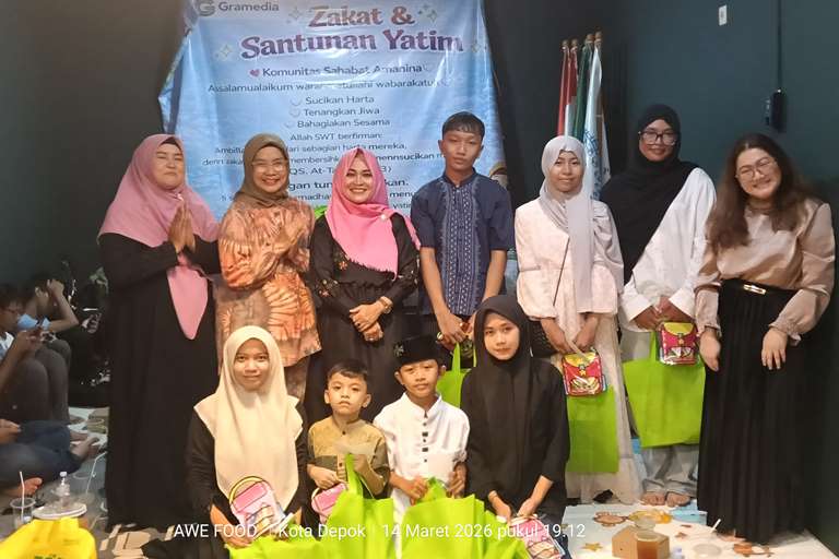 DEPOK, SEBARAYA.COM – Semangat berbagi di bulan suci Ramadan kembali ditunjukkan oleh komunitas pelaku usaha mikro, kecil, dan menengah (UMKM) di Kota Depok. Komunitas Sahabat Amanina Depok bersama Yayasan Maharani Kirana Pertiwi (YMKP) menggelar kegiatan buka puasa bersama sekaligus santunan anak yatim pada Sabtu, 14 Maret 2026 di Toko PINTU Depok.